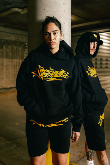 Stand bold in the We Are Warriors Black & Yellow Graffiti Hoodie. A statement piece built for streetwear and storytelling. Featuring the Warriors graphic in our signature yellow with a rubber WAW logo badge, this heavyweight hoodie reps culture, strength, and identity with every wear. Made from premium fleece for all-day comfort, it’s finished with ribbed cuffs and a kangaroo pocket for utility. Whether you’re on the block or on the move, this one’s made to turn heads and hold ground.